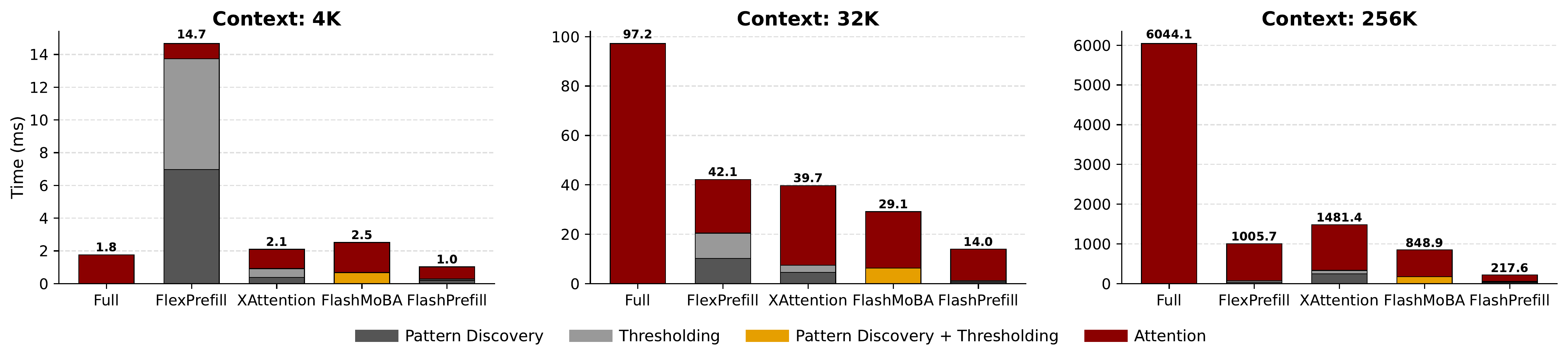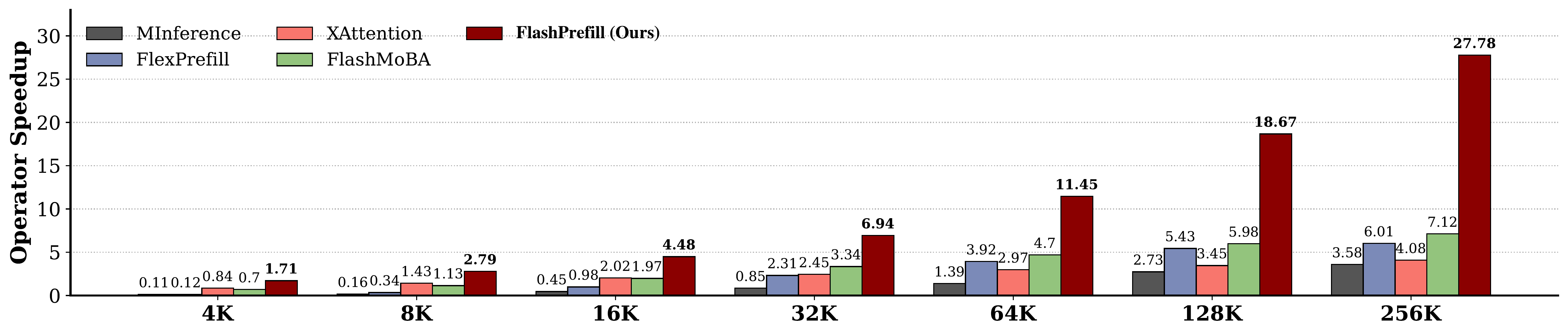 | FlashPrefill | 257ms | 519ms | 1090ms | 2331ms | 4909ms | 10702ms |